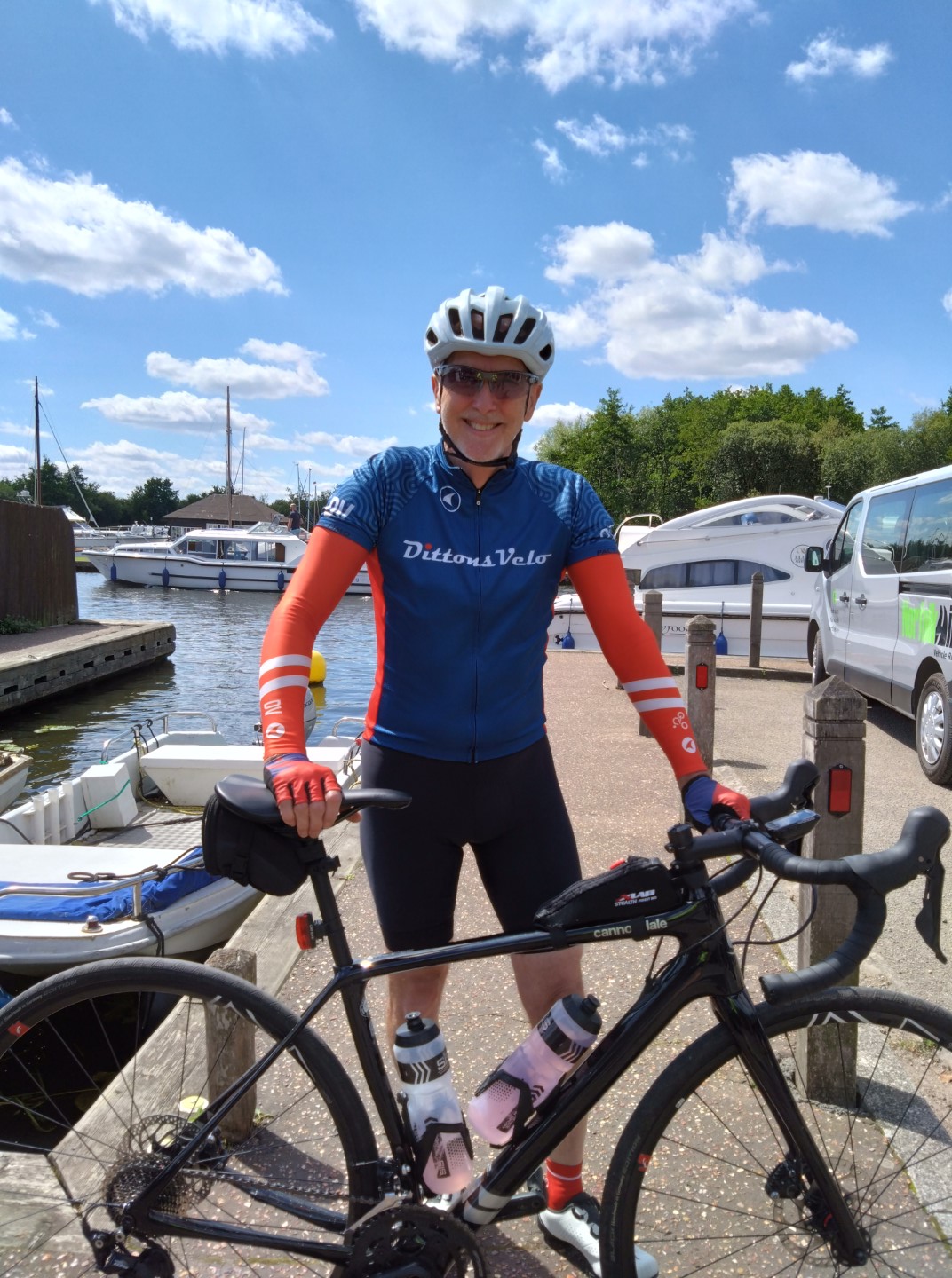 Some black clouds started to blow past as we headed out past the mill to Sparham and along Nowhere Lane towards Kerdiston, where we caught a shower and stopped to put on rain jackets. The shower didn’t last long but it was a lot cooler under the clouds and the rain jackets stayed on for the rest of the ride.