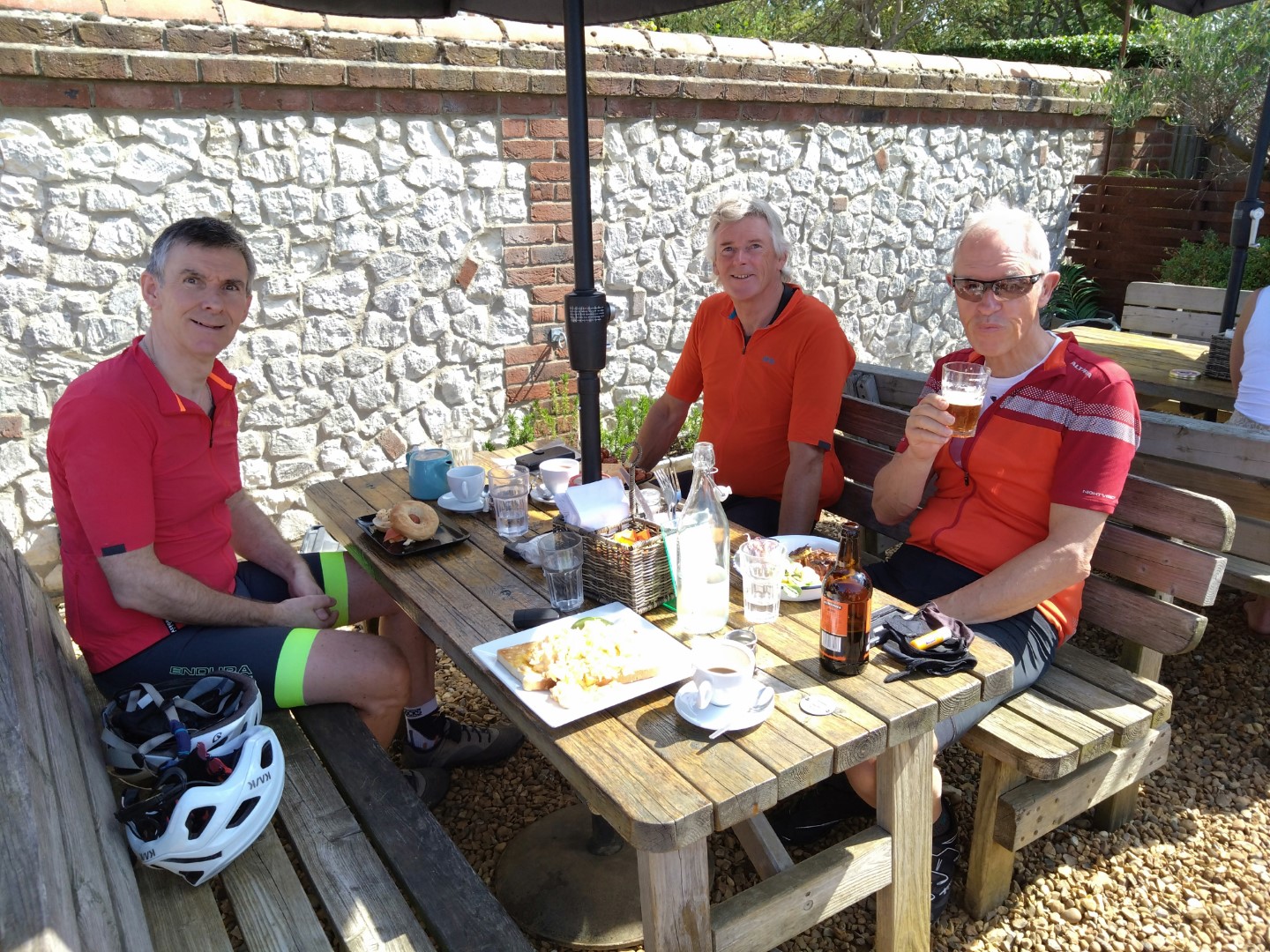 We continued on the now damp roads to Wood Dalling and Red Pits towards Corpusty, where Duncan S continued for home, while the rest went via Town Close Lane for the climb up to Edgefield. After a brief rest and a few blackberries at the top of the hill, we continued towards Baconsthorpe and caught a second shower before the split at the top of Bodham Hill, with Andrew turning left and Mark and Chris opting to return home via Upper Sheringham.