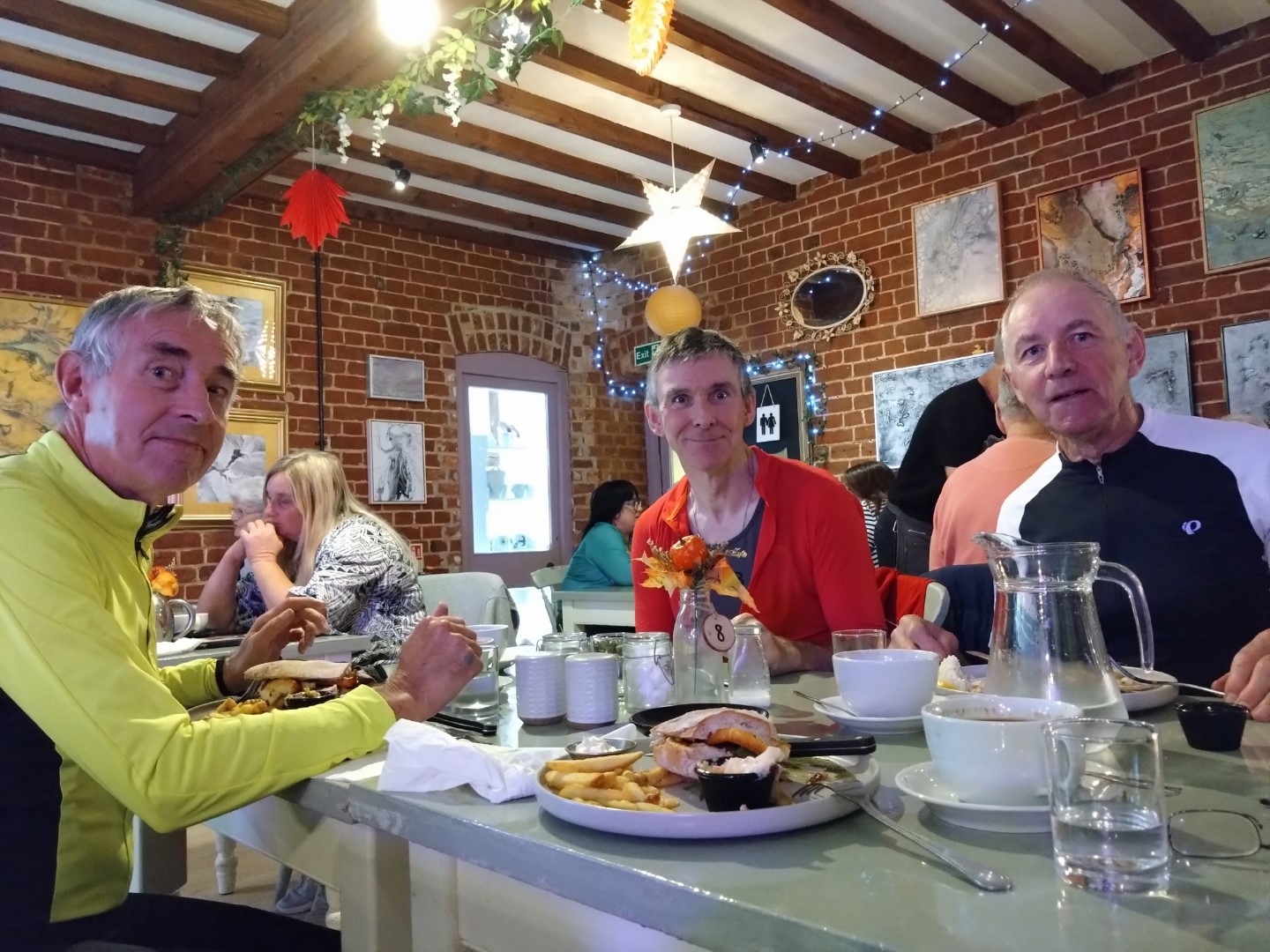 As we arrived at Dunes, Neil S was sat outside enjoying his lunch, he had his covid jab in the morning and had taken the coast road to join us.