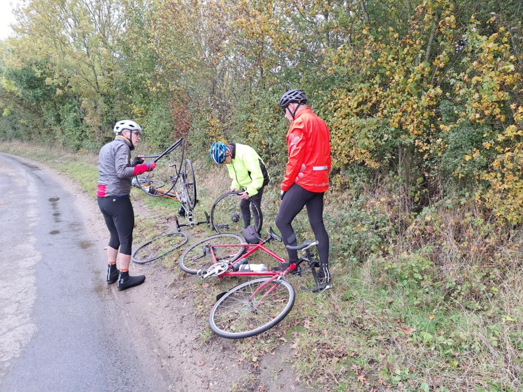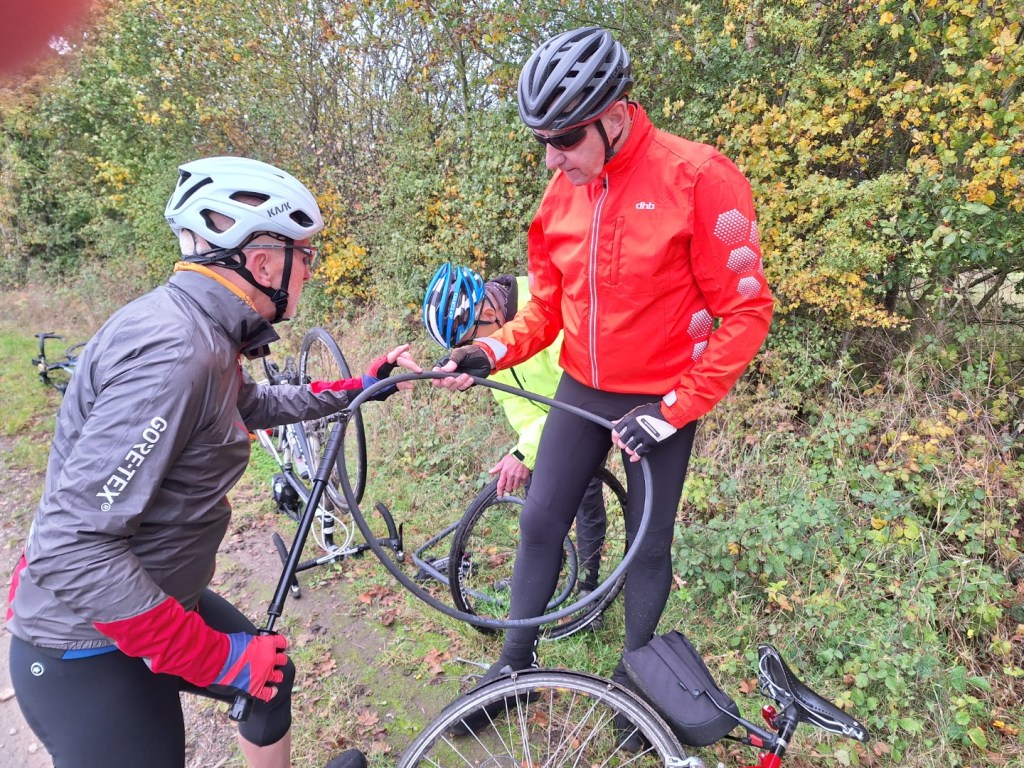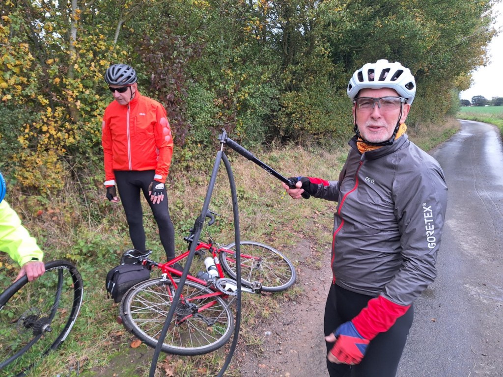 The rain had still held off as we started on the way back, however, Graham had a puncture about four miles into the route.