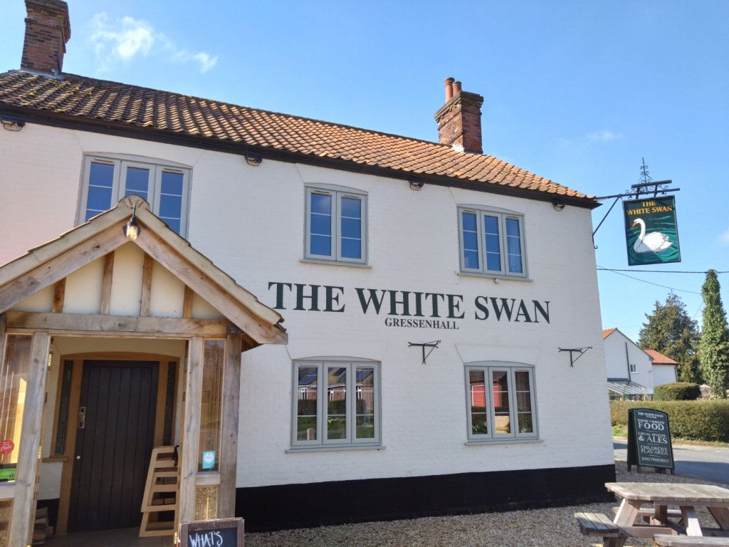 Then with the wind helping, we made brisk progress to Elsing, Swanton Morley, Hoe and the White Swan at Gressenhall. This community owned pub has been a Wednesday ride destination a couple of times and has always provided a friendly welcome and good food and drinks.