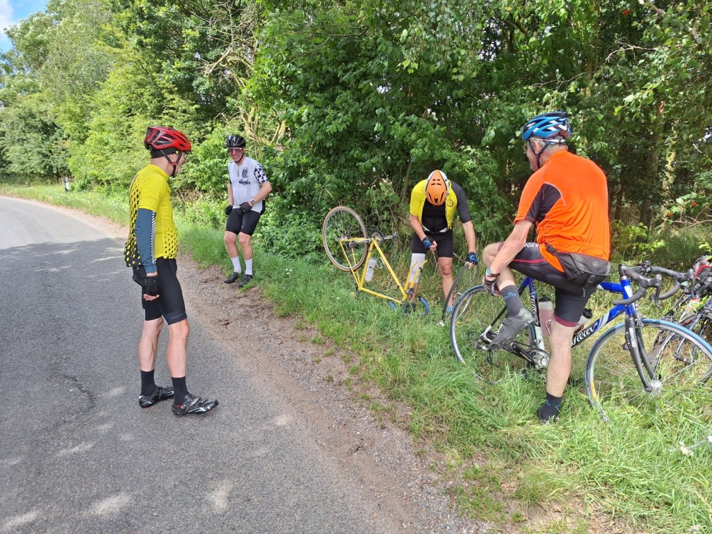 On a warm sunny Wednesday with temperatures reaching over 20 degrees Celsius and no forecast of rain (quite a rarity this year!) three Wheelers, Mark M, Duncan S and Chris S set off from PC. The initial route passed through Gresham, Sustead and Southrepps where Graham A then joined the group.