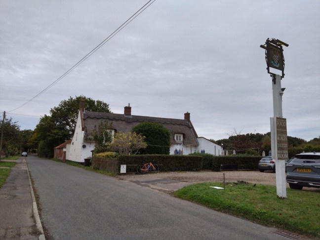 Mark assured us it was due to rain heavily at 2:45pm so we set a target of leaving the pub by 12:45 (which we nearly achieved) and agreed to lop a couple of miles off the planned return leg too. Whether it was the beer, but Mark couldn’t seem to get his bike computer to work properly after lunch and as we were reliant on him for the ‘sneaky shortcut’ I was frankly a bit concerned.