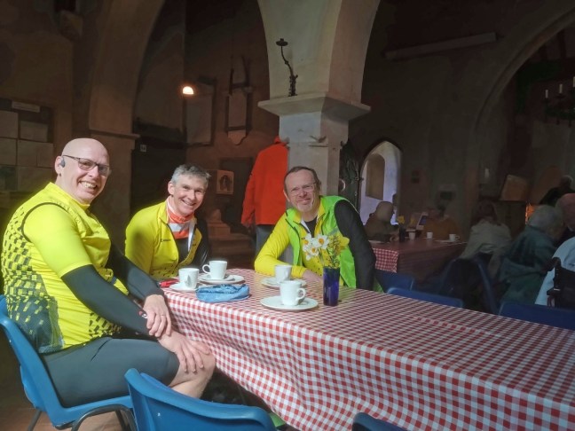 As we approached Thursford, Neil reminded us that it was the first Saturday of the month and Coffee and Cakes would be available at Thursford Church. Extra cake was too good to miss, so we joined a good number of locals and volunteers at the well organised event. Doug had cash and generously made a donation to cover us all (it’s for roof repairs) only to be told there were no gluten free cakes this month, so he had to watch on as we enjoyed ours, thanks Doug. That lack of extra cake must have been the reason he would fade on the return leg home!