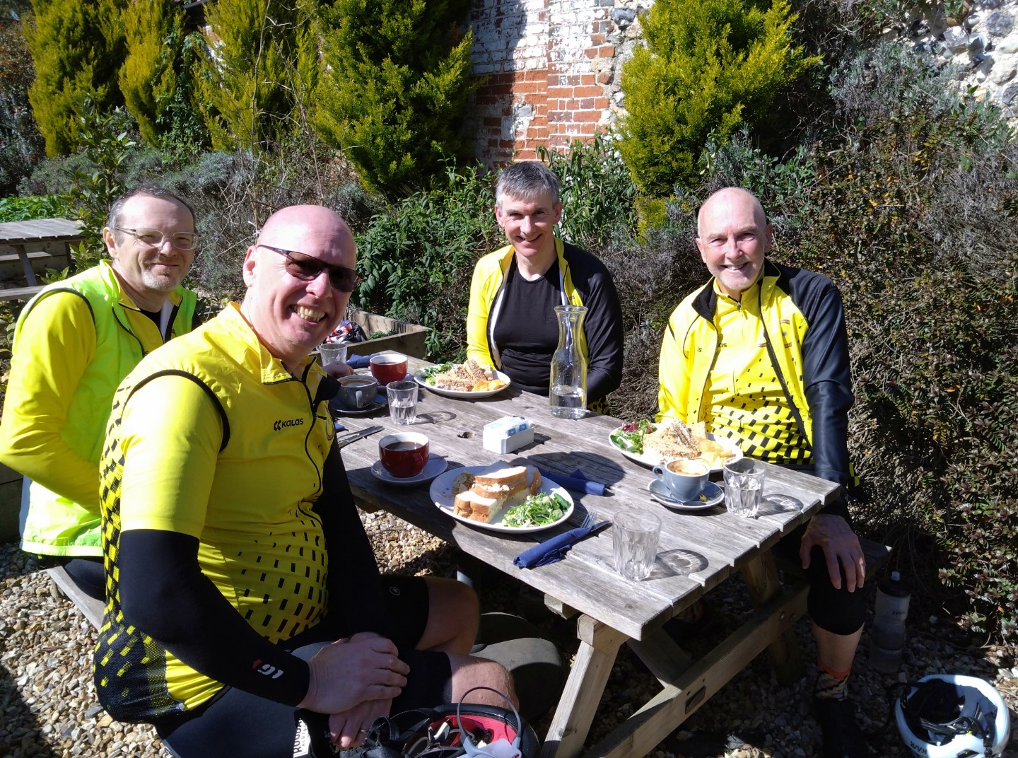 Continuing into the wind through Guestwick and into Corpusty, where Neil was happy to give up the lead and turn for home, leaving three to continue the battle northwards. At North Barningham, Doug peeled off for Gresham and the final few hard miles to Cromer, Ian keen for an extra couple of miles waited for the West Beckham junction before getting a tailwind back to High Kelling.
