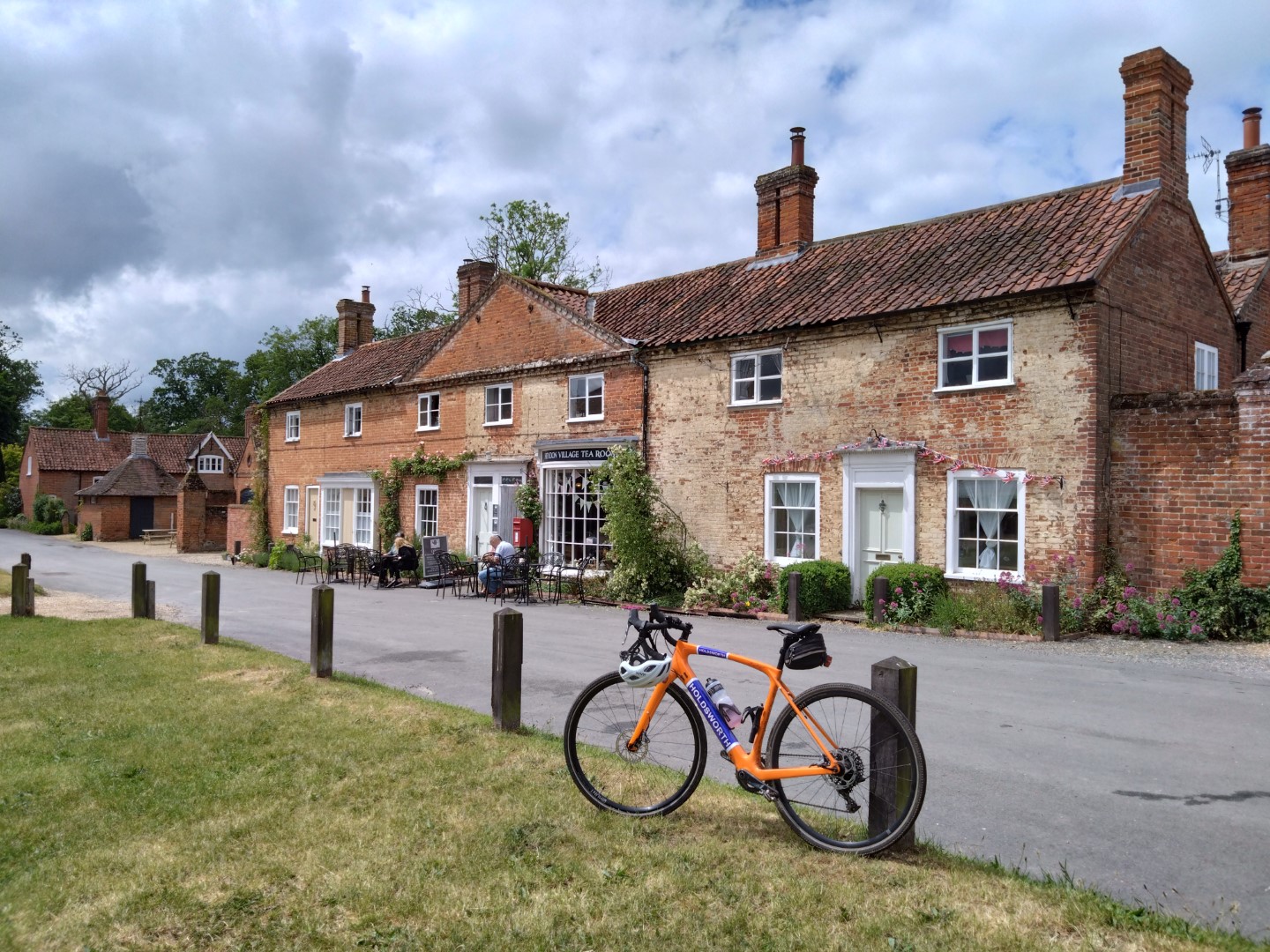 At a busy Heydon Tea Room a table was found within the back garden. Ian had got back home and jumped on his Holdsworth gravel bike and made his way straight to Heydon. He bagged a table and the peloton came along shortly after with Andy S following on 15 minutes later due to his puncture.