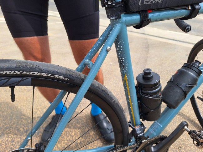 The peloton was up to full strength of 5 now. A large hare bolting out of the hedges and across the road between the bikes almost caused a pile-up a few minutes later, but it was so fast that it luckily managed to miss everyone. That wouldn’t be the only nature seen that day, but nothing else was aimed directly at us!