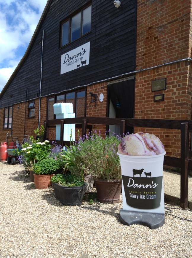 Fortunately a stop had been planned at Dann’s Farm Shop to enjoy some of their ice-cream. Chris kindly treated us all to ice-creams and we cooled down in the shade.