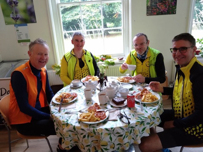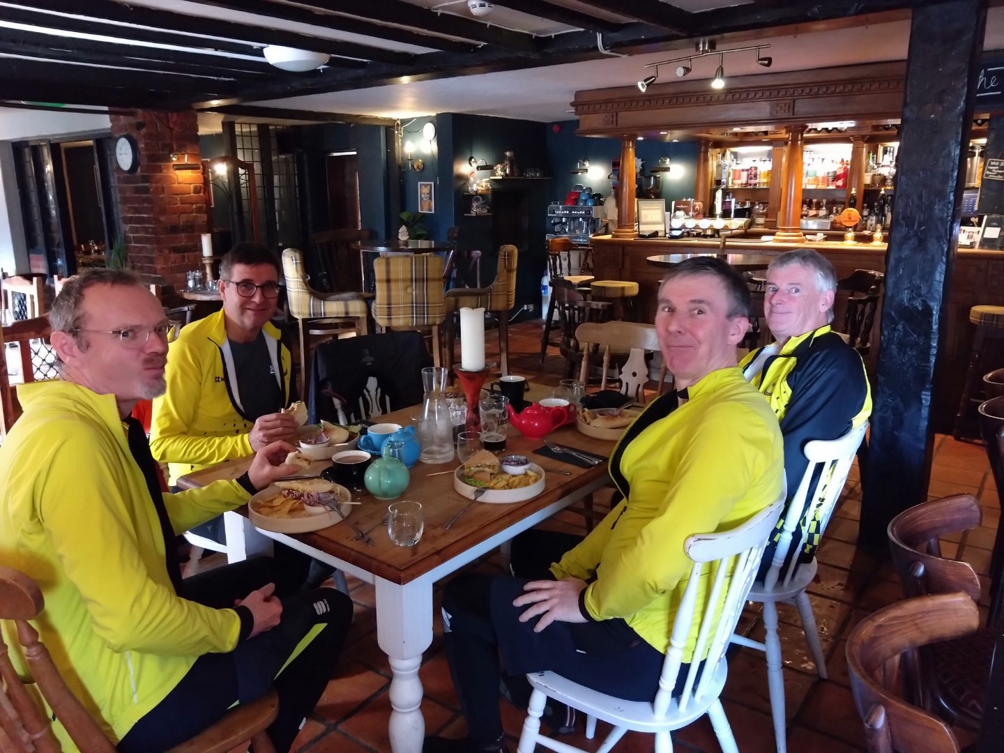 The four members set off heading through Gresham, Aylmerton and through the grounds of Felbrigg Hall. Leaving Felbrigg we went down to Hall Road heading into Cromer turning right at Comer Zoo. Here we met Doug H. The route took us through Northrepps, Trunch, Bradfield, Banningham to Erpingham. At this point we turned back eastwards through the lanes up a small track to the back of the Artisan Bistro Alby, meaning we didn’t need to touch the busy Cromer Road.