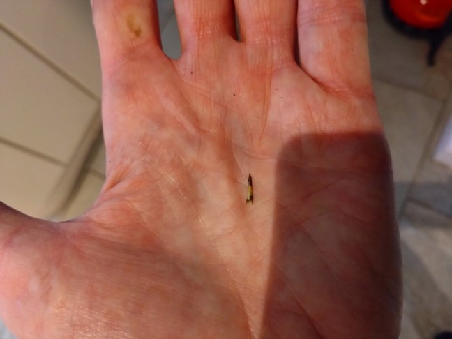 No ride photo today, instead Ian shows off the thorn he pulled out of his tyre after Wednesday’s ride, apparently the tyre went flat overnight, so failed to qualify for this year’s Puncture Challenge!