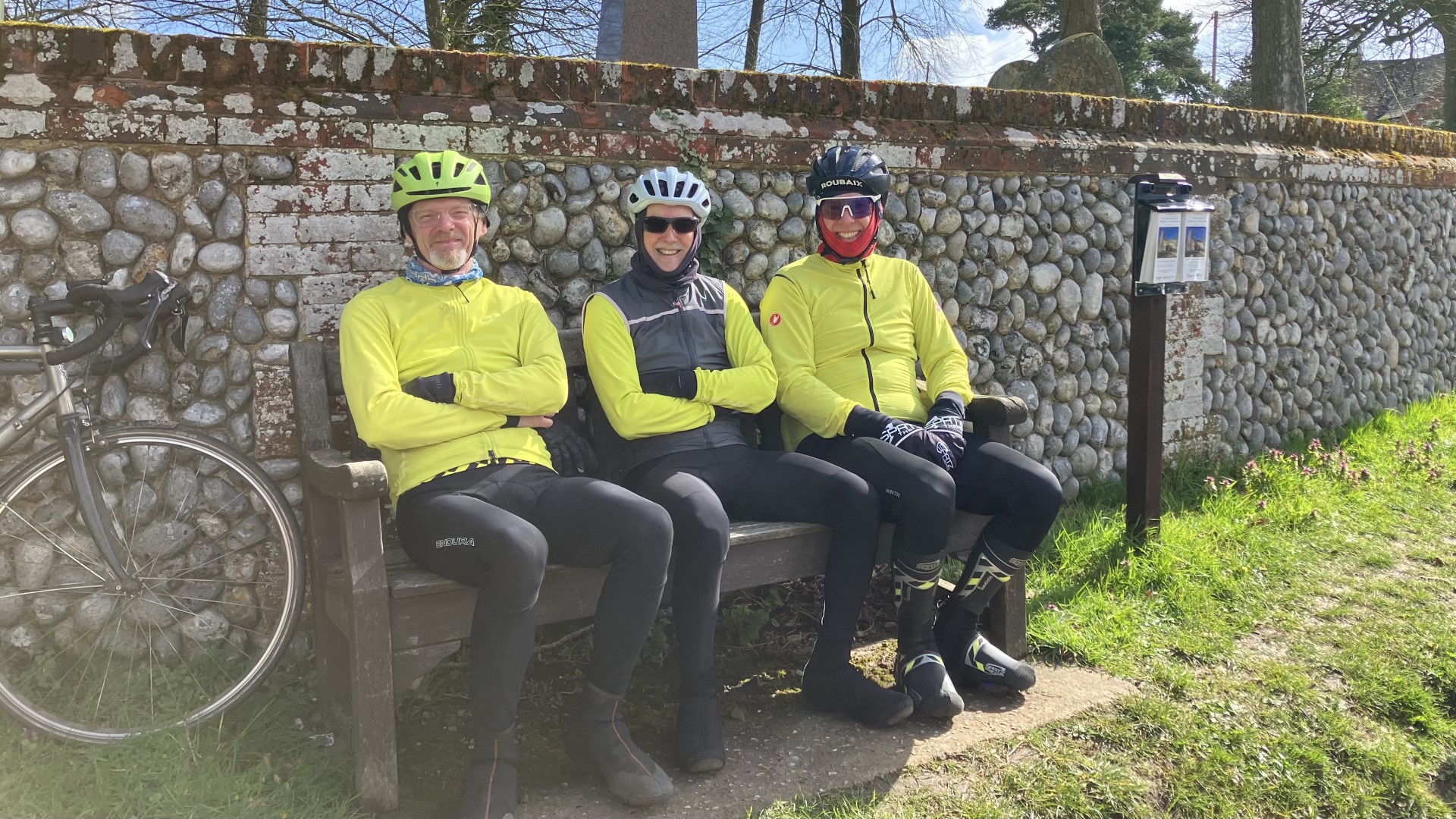Ian, Doug and Neil were sat on the bench waiting at Gresham church. There was a certain air of Last of the Summer Wine about the seated trio, but there was no tin bathtub nearby that could be pressed into service as an impromptu toboggan down any nearby hills. On balance, bicycles are probably safer.