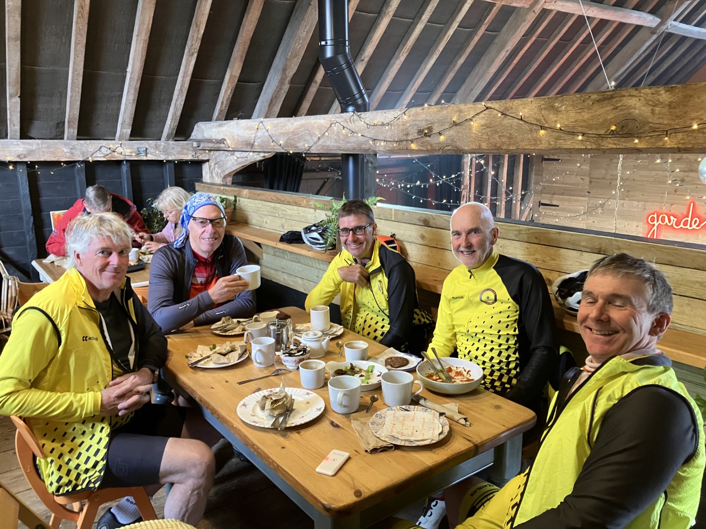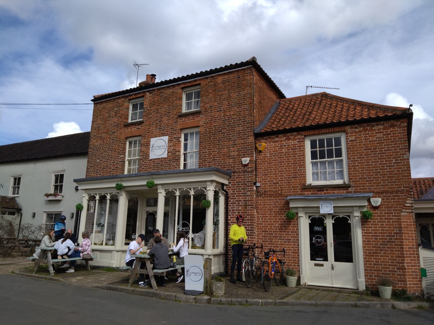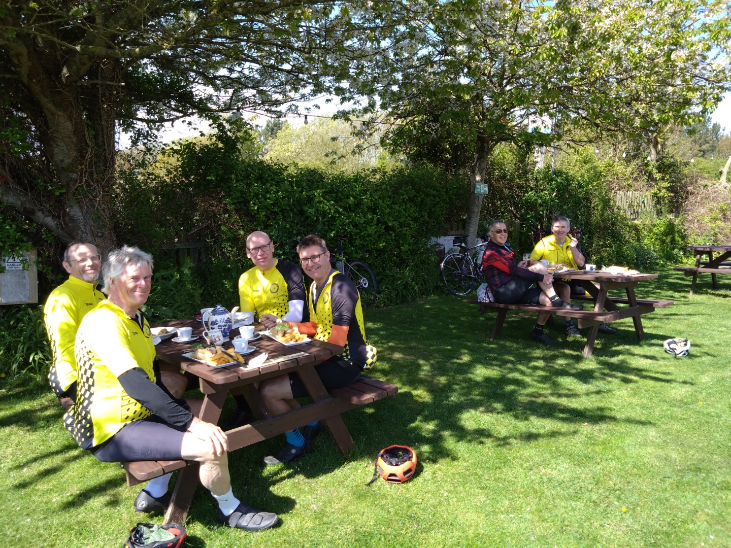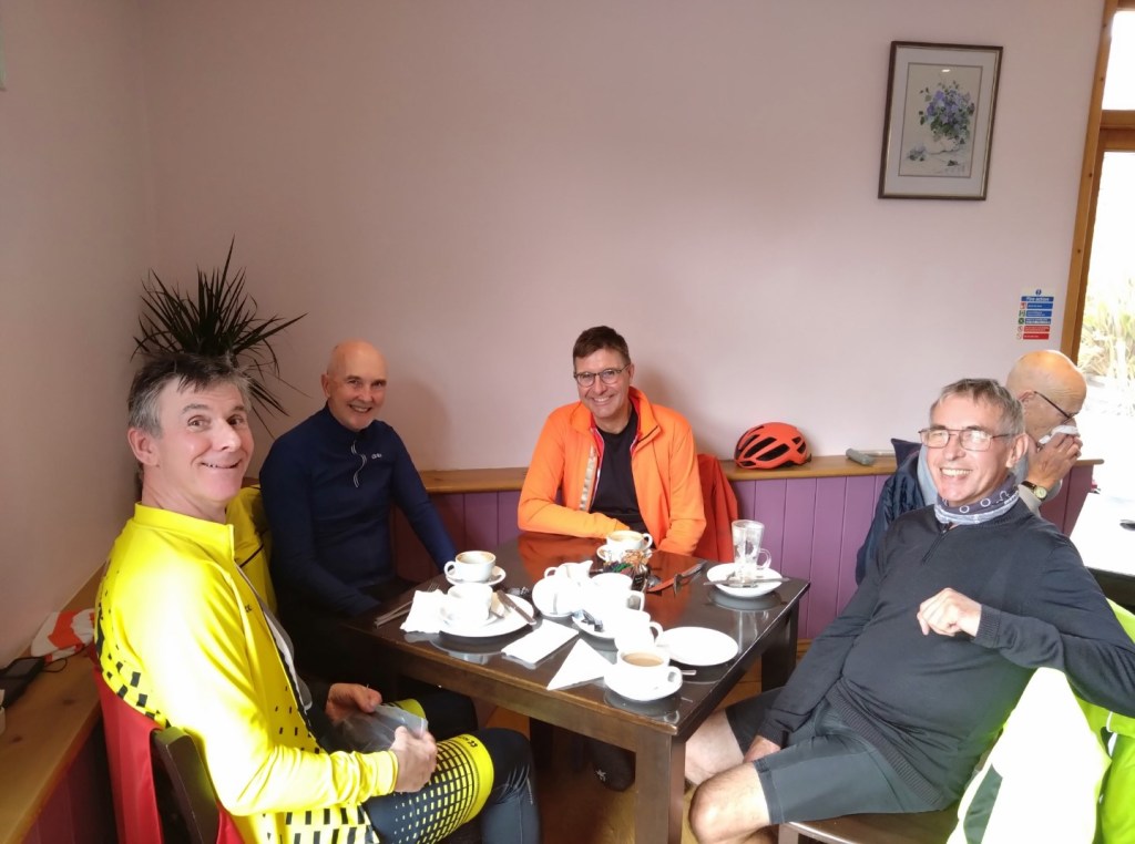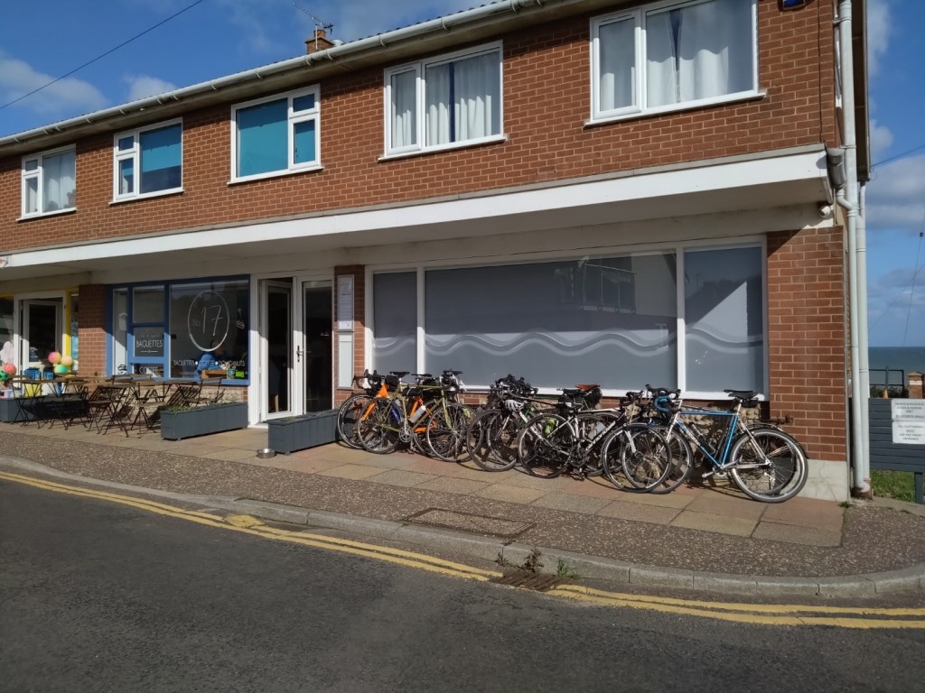 Where’s the air gone?Enjoying lunch at The Rising Sun, Coltishall, 4th Sept 2024. L-R Andrew B, Chris S, Malcolm S, Mark M cameraAll smiles at Bintree Mill after 20miles. L-R Graham A, Neil Mc and our 100+ milers Chris S, Doug H. 31st Aug 2024Lunch at Smallburgh Crown 28th Aug 2024 L-R, Malcolm S, Chris S, Graham A (with hat), Ian ADrying out upstairs at Poppylands, Horsey. 24th Aug 2024. L-R, Chris S, Doug H, Mark M camera.Always fun tea cosies at Poppylands, Horsey. 24th Aug 2024Purdy’s Tearoom, 21-August-2024. L-R: Graham A, Duncan A, Graham J Mark M. Ian A camera.Ian A at Blickling Hall en route to Purdy’s, 21-August-2024.Natural Surroundings 14-Aug-2024, L-R Chris S, Clive aka “The Sausage Pirate”, Mark M, Andrew B. Ian A camera.Bray’s Pork Pies HQ, Bayfield EstateChris S and Graham A enjoying lunch in the sun at Chrysalis Cafe, Sparham Hill. 6th August 2024Bugs at the Bug Park, Sparham Hill. 6th August 2024Puncture #2 for Neil S. Neil Mc, Doug H, Graham A share his dismay. Beeston area 20th July 2024New Jersey Boys, Hempstead 10-Jul-2024. L-R Andrew B, Duncan S, Chris S, Mark M, Ian A cameraArtisan Café, Alby, 10-Jul-2024. L-R Mark M, Ian A, Andrew B, Chris S, Duncan S, Doug H camera, Graham A out of shot.Heydon Tearooms from village green 26-Jun-2024Heydon Tearooms back garden 26-Jun-2024. L-R: Mark M, Ian A. Andrew B camera.Bright red poppies near East Rudham, 22nd June 2024Café Gardens, Little Plumstead 19-Jun-2024Lunch in the sunshine (finally!), The Walled Garden café, Little Plumstead 19-Jun-2024. L-R Malcolm S, Mark M, Ian A, Graham A.Hydrating at The Fur & Feather, Woodbastwick 19-Jun-2024The Barns Café North Creake 07-Jun-2024. L-R Doug H, guest Phil, Mark M. Ian A camera.Adding some colour to the countryside in the new Wheelers kit, Ian A, Mark M, 8th June 2024L-R, Ian A, Graham A, Duncan S, Mark M camera, enjoying good coffee and cake at Java Bean, RAF Coltishall, 5th June 2024Fresh & fluffy chocolate cake, Java Bean Café, RAF Coltishall 5-Jun-2024Felmingham Church 1st June 2024 L-R, Graham A, Malcolm S, Neil S, Heather, Jim H, Neil M, Doug H, Mark M cameraSpanish Galleon Replica Andalucia, Gt Yarmouth 1st June 2024Humpty Dumpty and friends sitting on a wall plus chipmunk, Bintree Mill 29-May-2024. L-R Ian A, Duncan S, Neil M, Andrew B, Mark M.Sculthorpe Mill 29-May-2024. L-R Duncan S, Mark M, Neil M, Ian A camera.Barsham Brewery stop 29-May-2024.Barsham Birthday Beers on Duncan, Barsham Brewery 29-May-2024. L-R Bitter Old Bustard best bitter, Oaks amber bitter.Enjoying an ice-cream rain break at Dann’s Farm shop, North Tuddenham 25-May-2024, L-R Chris S, Ian A, Mark M.The Old Diary, Stanfield 15-May-2024 L-R Chris S, Andrew B, Ian A, Mark MCake Scoffing at The Old Dairy 15-May-2024 L-R Chris “I’m dieting” S, Andrew B. Ian A cameraBintree Mill 15-May-2024 L-R Mark M, Andrew B, Chris S. Ian A cameraResting Scarecrow? Wighton 11-May-2024 photo Ian A“The Mole Whisperer”, Wighton 11-May-2024 photo Ian ALittle Miss Muffet plus spider, Wighton 11-May-2024 photo Ian APreparing to saddle up, Gt. Bircham Windmill 11-May-2024 photo Ian ACorned beef hash in a mess tin with a Churchill tea cosy – Poppylands 4th May 2024. L-R Graham A, Malcolm S, Neil M, Mark M cameraKeep Calm and Carry on Eating – L-R Doug H, Ian A Poppylands, Horsey 4th May 2024Happisburgh Lighthouse 4th May 2024 Ian A photoHappisburgh car park entrance, now very close to the sea. 4th May 2024. L-R Graham A, Mark M, Neil M, Doug H, Ian A cameraA Glorious Spring Day 4th May 2024 Ian A photoSunshine at Hoveton Hall cafe, 1st May 2024