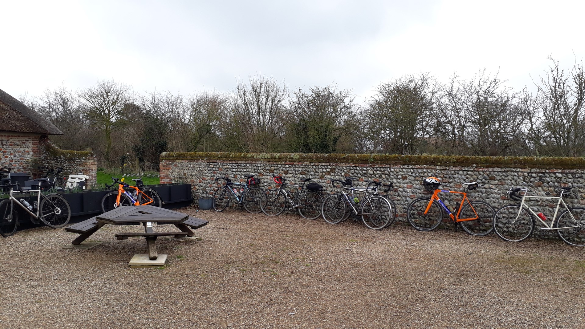 A cancelled ride won’t stop Wheelers from getting to the cafe. L-R Mark M, Andy S, Andrew B, Ian A. Streat Boss, Sheringham 7th Jan 2026Heydon Village in the winter sun. L-R Andrew B, Mark M, Clive A, guest Joe, Doug H. 31st Dec 2025Blue sky, sunshine, ignore the thermals and it could be summer! L-R Clive A, guest Joe, Doug H, Mark M, camera Andrew B. Heydon, 31st Dec 2025Wells quayside with (sadly unlit!) Xmas tree, 27-Dec-2025. L-R: Andy S, Mark M, Chris S, Doug H. Ian A camera.Holkham Hall with lights and giant bows, 27-Dec-2025. Photo Ian A.They tasted as good as they looked and Andrew B was buying! Watsons, Bacton 20th Dec 2025 Camera Andrew B.Doug’s front tyre now ejects its sealant. Offering encouragement L-R, Chris S, Doug H, Mark M, Ian A. Camera Andrew B 20-12-2025First two of several punctures in the cold and mist, Club ride 20-Dec-2025. L-R: Doug S, Andrew B, Mark M, Chris S, Andy S. Ian A camera.Doug’s tyre whispering wasn’t a great success. Andrew B is unconvinced. PC 20th Dec 2025Surprisingly, there was enough sealant left to seal the hole in Doug’s rear tyre. PC 20th Dec 2025 New bike and first puncture for Duncan S. Edgefield Road 17th Dec 2025A festive Stables Café Blickling Hall, 17-Dec-2025. L-R: Duncan S, Andy S, Andrew B, Chris S. Photo Ian A.With this much luck, Andy S should buy a lotto ticket! Puncture #2 Cawston, 13th Dec 2025Tyre lever end that remained inside the tyre causing Andrew B a puncture on the next ride.Puncture #1 Foulsham L-R Mark M, Andy S 13th Dec 2025Hunworth Puncture, L-R Andrew B, Mark M, Andy S camera. 10th Dec 2025Happy to be warm and dry! L-R, Doug H, Mark M, Chris S, Neil M, Andy S, Ian A. Rising Sun, Coltishall 6th Dec 2025Puncture repair stop, Wood Dalling, club ride 03-Dec-2025. L-R: Andrew B, Mark M. Photo Ian A.Mustard field near Skeyton, club ride 12-Nov-2025. Photo Ian A.Front Puncture for Chris S, Lower Southrepps 12th Nov 2025Rear Puncture for Chris S, Colby 12th Nov 2025Algy’s Farm Shop & Cafe. Scene of Doug’s birthday cake treat, club ride 8-Nov-2025. Photo Ian A.The Old Dairy, Stanfield, 8th Nov 2025, L-R, Doug H, Ian A, Mark M, Andy S.Chris S dishing out his birthday cakes, Artisan Bistro, Alby 29-Oct-2025. Photo Ian A.Pumpkinfest, Alby. Club ride 29-Oct-2025. Photo Ian A.Lunch and Gurning, The Chequers Hainford 25-Oct-2025. L-R: Neil M, Andy S, Mark M, Chris S. Ian A camera.Tein Lucasson prints, The Chequers Hainford, 25-Oct-2025. Photo Ian A.Hanworth 18th Oct 2025. L-R, Doug H, Graham A, Neil Mc, Andy S, Chris S, Ian A, Andrew B, Mark M.Andrew B very pleased with his dessert. Pleasure Boat Inn, 18-Oct-2025. Photo Ian A.The Pleasure Boat Inn Hickling Broad, 18-Oct-2025. Photo Ian A.Doug’s “Not really a puncture”, club ride 18-Oct-2025. Photo Ian A.The Coast Café & pool, Trimingham, Club Ride 15-Oct-2025. Photo Ian A.Making way for the harvest, Colby St. Giles, Club Ride 15-Oct-2025. Photo Ian A.Cider Country! Club Ride 15-Oct-2025. Photo Ian A.Quiche Chips & Beans all round, The Mardlers’ Rest Cafe, Gressenhall 11-Oct-2025. L-R: Phil B, Mark M, Neil M, Andy S. Ian A camera.Porters Lane bridge over the Wensum at Lenwade, Club Ride 11-Oct-2025. L-R: Andy S, Neil M, Mark M. Ian A camera.Sugar beet ready for collection, Colby 08-Oct-2025. Photo Ian A.Richardson’s Marina Café, Stalham 08-Oct-2025. L-R: Andrew B, Graham A, Clive A, Andy S. Mark M AwoL. Ian A camera.Rheas on a farm near Stalham, club ride 08-Oct-2025. Photo Ian A.Lunchtime at the Barn Café, North Creake, 1-Oct-2025. L-R: Andrew B, Andy S, Ian A, Duncan S, Mark M, Chris S.River Stiffkey at Houghton St. Giles, club ride 1-Oct-2025. Photo Ian A.St Peters Church, Melton Constable 27th Sept 2025. Photo Ian ASunshine and Rainbows at Baconsthorpe, 13th Sept 2025. Photo Mark MEnjoying good food at Litcham Deli, 13- Sept-2025. L-R: Andy S, Doug H, Mark M. Ian A camera.Mark’s nut. (Gallnut). Litcham Deli, 23-Sept-2025. Fish Identification in the Black Water at Worthing 13-Sept-2025. L-R: Doug H, Andy S, Mark M. Ian A camera.The Goat Inn, Skeyton. Club ride 10-Sept-2025The Goat Inn, Skeyton. Club ride 10-Sept-2025. Photo Ian ASpring tide at Blakeney, 10th Sept 2025. Photo Clive AThe usual good fayre at the Garden Kitchen Café, Hoveton Hall 3-Sept-2025. L-R: Andrew B, Mark M, Ian A.Hoveton Hall Café 3-Sept-2025. Photo Ian A.Broom Lane crossroads, Crostwight, 30-Aug-2025. L-R: Neil M, Doug H, Mark M. Photo Ian A.Fixing a chain issue & getting some lads rolling again on Nowhere Lane. 23rd August 2025Early lunch at Bircham Mill, L-R, Doug H, Neil Mc, Mark M, Chris S. 23rd August 2025Corvette Kingdom, Felmingham, 20th Aug 2025Walled Garden, Little Plumstead 20th Aug 2025, L-R, Graham A, Clive A, Andrew B, Duncan S, Chris S, camera Mark MMark looking pleased with his large breakfast sandwich, Junction 21 Tea Room, Themelthorpe 16-Aug-2025. L-R: Mark M, Chris S, guest rider Ben. Photo Ian A.Guest rider Ben’s beautiful custom built Enve Melee, club run to Themelthorpe, 16-Aug-2025. Photo Ian A.This sunshade is mine! Junction 21 Tea Room, Themelthorpe 16-Aug-2025. Photo Ian A.Sunflowers, New Road, Lower Bodham 13-Aug-2025. Photo Ian A.Giant Haystacks’ Guestwick, 13-Aug-2025. Bike for scale… Photo Ian A.Bintree Mill 13th August 2025 L-R Chris S, Andy S, Duncan S, camera Mark MThe Peloton arriving at Gresham Church,13-Aug-2025. L-R: Chris S, Duncan S, Andy S, Mark M, Ian A. Photo Ian A.Jarrolds Café, Letheringsett 06-Aug-2025. L-R: Mark M, Andrew B, Andy S, Duncan S. Photo Ian AMannington Hall Café 06-Aug-2025. L-R: Andy S, Mark M, Mannington Hall, Chris S, Duncan S, Andrew B plus various wasps. Photo Ian ASouth Creake Church, Club Ride 2-Aug-2025. Photo Ian ASculthorpe Mill, 2-Aug-2025. L-R: Andy S, Neil M, Chris S, Andrew B, Doug H, Barry, Mark M, Ian AWheeler of the future, Biagio’s Café 2-Aug-2025. L-R: small girl’s bike, Ian’s bike. Photo Ian ACorvette Kingdom, Felmingham 30-July-2025. Photo Ian A.Good lunch and cakes at Vera’s Cafe, S