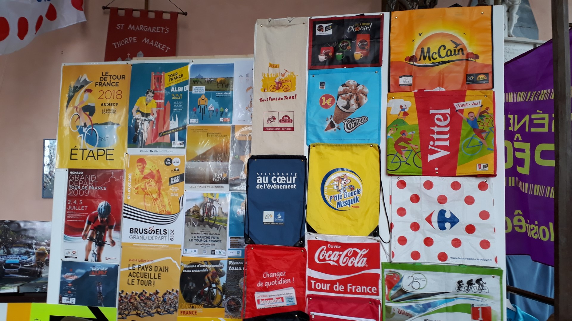 Thorpe Market Church hosted Peter Martin’s Tour de France memorabilia exhibition, to raise money for Nelson’s Journey (children’s bereavement help) and the church itself. Peter has been collecting for over 20 years and exhibiting for charity for 11 years. A very impressive collection of over 1,200 items on display 9-5pm 23-25 June 2023. Click the images for full size.