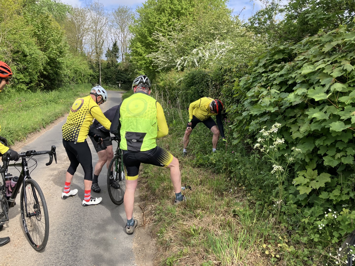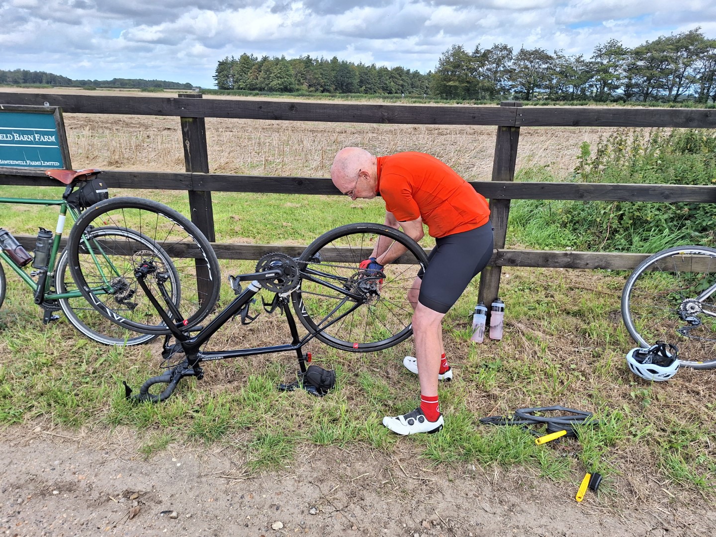 L-R Neil Mc and Andrew BNorth Creake Abbey car park 11-Sept 24, Chris S at work while Clive A and Andrew B offer advice.L-R Andrew B and Chris S, N Barsham road 11-9-24