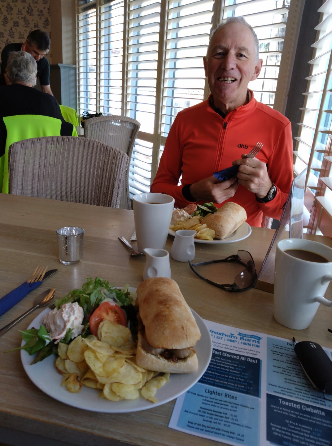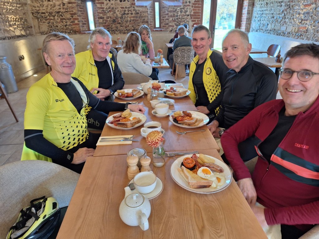 Photo Ian ABinham Parlour’s excellent breakfast for hungry Wheelers, L-R, Duncan S, Chris S, Mark M, Andrew B, Andrew S. 13th Nov 2024Oulton Airfield Memorial 2nd November 2024Great food at Gressenhall and hungry Wheelers, L-R, Mark M, Chris S, Ian A, Andrew B, Neil Mc, Doug H, 2nd Nov 2024Autumn colours, Gressenhall 2-Nov-2024.Statues at Workhouse Museum, Gressenhall 2-Nov-2024.Wheelers at Worthing Mill over River Blackwater, 2-Nov-2024. L-R: Andrew B, Doug H, Chris S, Neil Mc, Mark M. Ian A camera.An autumn afternoon at Happisburgh, with the new rock sea defences. 23rd Oct 2024Enjoying the Happisburgh sun, L-R, Duncan S, Andrew S, Doug H, Graham A, Mark M camera, 23-10-2024Three Very Large Portions at Biagio’s, East Rudham 19-Oct-2024. L-R: Chris S, Ian A, Mark MNNW enjoying all day breakfasts at Burnham Deepdale Café, 16-Oct-2024. L-R: Andrew B, Clive A, Chris S, Andrew S, Duncan S, Mark M (partial), Ian A, Holkham Park,16-Oct-2024. L-R: Clive A, Andrew S, Chris S, Andrew B, Duncan S, Mark M. Ian A cameraSampling the sea air, Wells quayside 16-Oct-2024. L-R: Andrew S, Chris S, Duncan S, Andrew B, Clive A, Mark M. Ian A cameraThe Chequers, Hainford 12-Oct-2024Enjoying lunch at The Chequers, Hainford 12-Oct-2024. L-R: Chris S (S for suntan), Mr. Cockatoo, Andrew B, Graham A, Mark M. Ian A camera.Racing for the pot of gold at the end of the rainbow, Nethergate 09-Oct-2024. L-R Andrew S, Mark M, Andrew B. Ian A cameraEnjoying good food and drinks at The Old Dairy, Stanfield 09-Oct-2024. L-R Andrew S, Mark M, Andrew B, Ian AApproaching Bintree Mill 09-Oct-2024.River Wensum at Bintree Mill 09-Oct-2024. L-R Mark M, Andrew B, Andrew S. Ian A cameraNow that’s a hill profile. Chris’ shortened ride to Benissa, North Costa Blanca, 9th Oct 2024Enjoying the Autumn sunshine at the Station Café Reepham 5-Oct-2024. L-R Mark M, Graham A, Doug H. Ian A camera.Chris S enjoying sun and 26c in Javea, North Costa Blanca, Spain 5th Oct 2024Squint and it could be Sheringham! Chris S enjoying sun and 26c in Javea, North Costa Blanca, Spain 5th Oct 2024Lily’s tearoom, Hadfield Nursery, North Walsham 02-Oct-2024Pleasant and friendly Lily’s Tearoom, N Walsham 02-Oct-2024. L-R Mark M (Bad case of helmet hair) Ian A, Andrew S (guest), Graham A. Andrew B cameraBlue sky, sunshine and sheltered from the wind. L-R, Neil Mc and Andrew B enjoying lunch at Bircham Mill. 28th Sept 2024Mark M having his last Bircham Mill Big Breakfast of the season. 28th Sept 2024Outside Javabean café (same temperature as inside!) Badersfield 25-Sept-2024. L-R Ian A, Chris S, Mark M, Duncan SJavabean café with Jaguar 25-Sept-2024. L-R Mark M, Ian A, Chris S, Duncan S.Several hundred LHD Lotuses (Lotii?) destined for Canada, Scottow Business Park 25-Sept-2024. Various Wheelers thinking “surely they wouldn’t miss one?…”The Pleasure Boat Inn at Hickling Broad 18 Sept 2024 L-R, Graham A, Mark M, Chris S, Andrew B cameraChris S hoping no-one will notice the tube change. L-R Graham A, Andrew B, Chris S. Horning 18-9-24Chris’ sailing boat at Horning 18th Sept 2024Magnificent Willow trees at Bintree Mill 14 Sept 2024 Autumn sunshine at Bintree Mill 14th Sept 2024