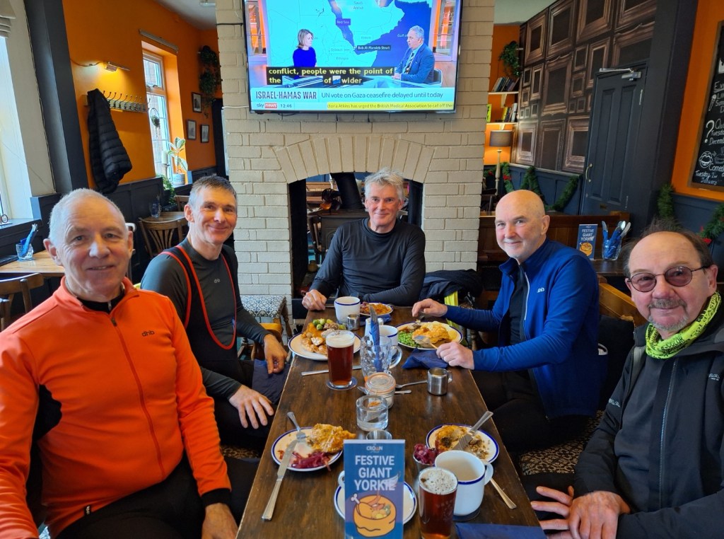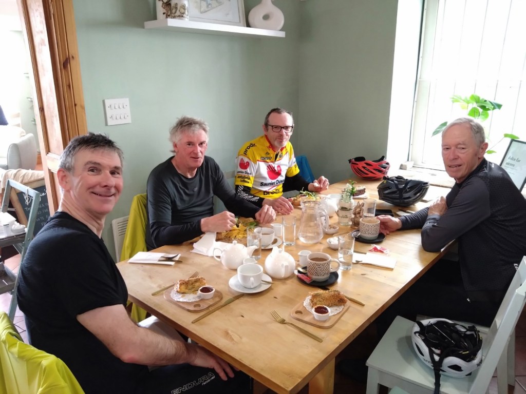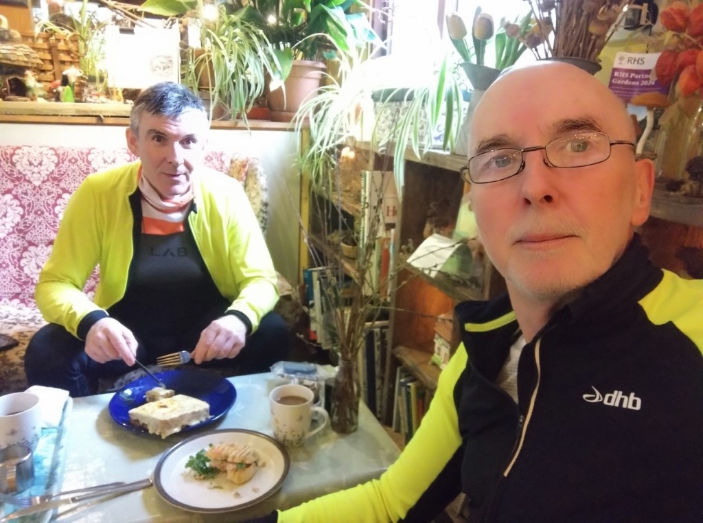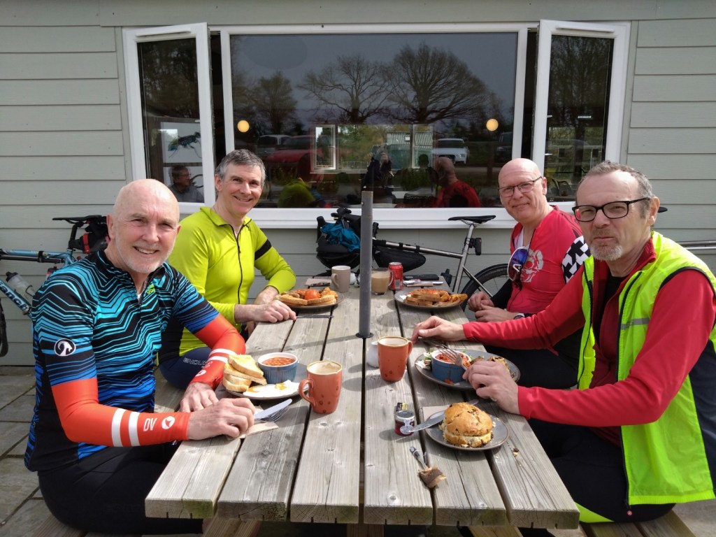 Udderly Brilliant! A hearty brunch at the Chrysalis Café, 6th April 2024. L-R Ian A, Mark M, Doug H, Neil McBugs at the Bug Parc, 6th April 2024Ponies near Ingworth 3rd April 2024Ian’s new best friend. Ingworth 3rd April 2024Biagio’s East Rudham 30th-March-2024Biagio’s 30th-March-2024 L-R Mark M, Chris S, Neil Mc and Clive A. Ian A cameraRustic Bunting that we didn’t seeWensum at Bintree Mill 30th-March-2024. L-R Mark M, Neil Mc, Chris S and Clive A, Ian A cameraBintree Mill 30th-March-2024L-R, Graham J, Andrew B, Clive A, Graham A & Mark M camera, at Dilham Crosskeys, 27th March 2024Sunny Irstead Staithe on 27th March 2024Spring lambs at Briningham Hall 20th-Mar-24L-R Mark and Ian looking startled at Natural Surroundings, Bayfield Park 20th-Mar-24Natural Surroundings, Bayfield Hall, 20th-Mar-24Un Café Beeston St. Andrew 16-Mar-24. Just over the Broadland Northway from SpixworthL-R Graham A, Chris S & Mark M (camera) enjoy a light lunch at Lemon and Rosemary Yard, Elsing 13th March 2024The refurbished Gressenhall, White Swan. 9th March 2024Always happy when food is on the table, L-R, Neil Mc, Mark M, Chris S, Ian A. 9th March 2024Wednesday Coffee & Cake mornings at Erpingham Village Hall. 6th March 2024Andrew B is spoilt for choice at the Dial House, Reepham. 6th March 2024Warm & dry enough to sit outside the Dial House, Reepham. L-R Mark M, Andrew B, Graham A, Ian A camera. 6th March 2024Spring sunshine at the Triumphal Arch, Holkham 2nd March 2024Rainbows and rain at Great Snoring, 2nd March 2024A little deeper than it looks. Bale road, Hindringham 2nd March 2024Blakeney harbour on 28th Feb 2024Good food at the Kings Head, Blakeney. L-R Graham A, Andrew B, Chris S, Mark M, Ian A camera. 28th Feb 2024Full and happy at Pensthorpe. L-R Neil Mc, Kay B, Mark M, Chris S, Ian A, Andrew B camera. 17th Feb 2024Plenty of water at Bintree Mill. L-R, Neil Mc, Andrew B, Kay B, Mark M, Chris S, Ian A camera. 17th Feb 2024L-R, Andrew B, Chris S, Graham A, Ian A, Mark M enjoy lunch at Junction 21, Themelthorpe. 14th Feb 2024 L-R, Clive A, Brian P, Neil Mc, Neil S, Chris S, Mark M and Andrew B camera. Chrysalis Cafe 10th Feb 2024L-R, Mark M, Chris S, Andrew B, Ian A enjoying good food at Artisan Cafe, Alby. 7th Feb 2024A tempting selection of cakes and savouries at Artisan Cafe, Alby. 7th Feb 2024Andrew B with a front puncture in his Marathon Plus. 7th Feb 2024Many hands make light work and eventually get the tyre back on the rim. 7th Feb 2024Where did Chris S get his puncture? In his rear Marathon Plus. Andrew B & Mark M offer support. 7th Feb 2024While Chris S fixed his puncture, we had time to go into Salle church, worth a visit, surprisingly large. 7th Feb 2024The popular Watsons cafe at Bacton. 3rd Feb 2024All Say Focus! L-R Mark M, Duncan S, Ian A, Graham A at Old Reading Rooms, Kelling 31st Jan 2024It’s a Can-Am Spyder F3 and looked great. Old Reading Rooms, Kelling, 31st Jan 2024Ian A, Andrew B and Chris S take a close look at the Bure at Oxnead, 17th Jan 2024Nelson’s of Wells save the day for L-R, Andrew B, Neil Mc, Chris S, Ian A (camera). 13th Jan 2024L-R, Chris S, Neil Mc, Andrew B and Ian A improve the view of Holkham Hall? 13th Jan 2024A bright and sunny day at Obrennans cycle friendly cafe, Great Walsingham. 10th Jan 2024L-R, Chris S, Andrew B and Ian A (camera) enjoy a warm welcome at Obrennans, Gt Walsingham 10th Jan 2024Chris S checks that Obrennans chocolate fudge cake is as good as last years. Gt Walsingham 10th Jan 2024Graham A wins 1st puncture of the year prize. Nr Felmingham 3rd Jan 2024A quiet Stables Cafe, Blickling Hall. L-R, Graham A, Chris S, Andrew B, Mark M & Ian A camera. 3rd Jan 2024It’s only flat at the bottom Graham! After lunch workout at Blickling 3rd Jan 2024Graham chats to the locals at Oulton Street, 3rd Jan 2024It’s Deja Vu all over again! Post lunch rear puncture for Graham. Chris S, Andrew B & Ian A (camera) provide encouragement. Oulton Street 3rd Jan 2024Synchronized Puncture Repairs at Edingthorpe Front flats for Neil MC and Mark M 30th Dec 2023Last Puncture of the Year? Thorns and rain cause front flats for Neil Mc and Mark M. Edingthorpe 30th Dec 2023The Fabulous Five or something. L-R, Andrew B, Mark M, Chris S, Ian A, John S. Trunch Crown 20th Dec 2023Pie and Mash, Giant Festive Yorkshire and Sausage Roll. Trunch Crown 20th Dec 2023L-R, Graham A, Harvey T, Brian P, Neil Mc, Chris S & Mark M camera at the excellent Chrysalis Cafe, Sparhamhill. 16th Dec 2023L-R, Chris S and Andrew B about to enjoy the pies at Warham Horseshoes. 13th Dec 2023The day started with sleet! L-R, Chris S, Mark M & Ian A camera. Three Swallows, Cley 29th Nov 2023L-R, Chris S, Ian A, Andrew B, Mark M enjoying lunch. Recruiting Sergeant, Horstead 22nd Nov 2023Coffee and cake at Squirrelwood Equestrian Centre, Worstead, 18th Nov 2023Andrew B is happy now he has a full plate. Wroxham Barns, 15th Nov 2023L-R, Andrew B, Ian A and Graham A at Wroxham Barns, 15th Nov 2023Damp but not deterred. Chris S and Mark M at Attlebridge, 4th Nov 2023River Wensum at Attlebridge looking north. 4th Nov 2023Enjoying lunch and drying out at Banningham Crown. L-R, Chris S, Mark M, Andrew B, Graham A, Ian A camera. 1st Nov 2023nLunch in the sun at Waxham Barn. L-R, Jim H, Neil S, Graham J, Brian P, Chris S, Mark M camera. 28th Oct 2023Dunes Cafe and Waxham Barn in the October sun. 28th Oct 2023Litcham Deli Halloween Horror Show. L-R, Andrew B, Chris S, Clive, Mark M, Ian A. 25th Oct 2023The deceptively large Litcham Deli. 25th Oct 2023Norfolk flint plus rain equals a puncture for Neil Mc.